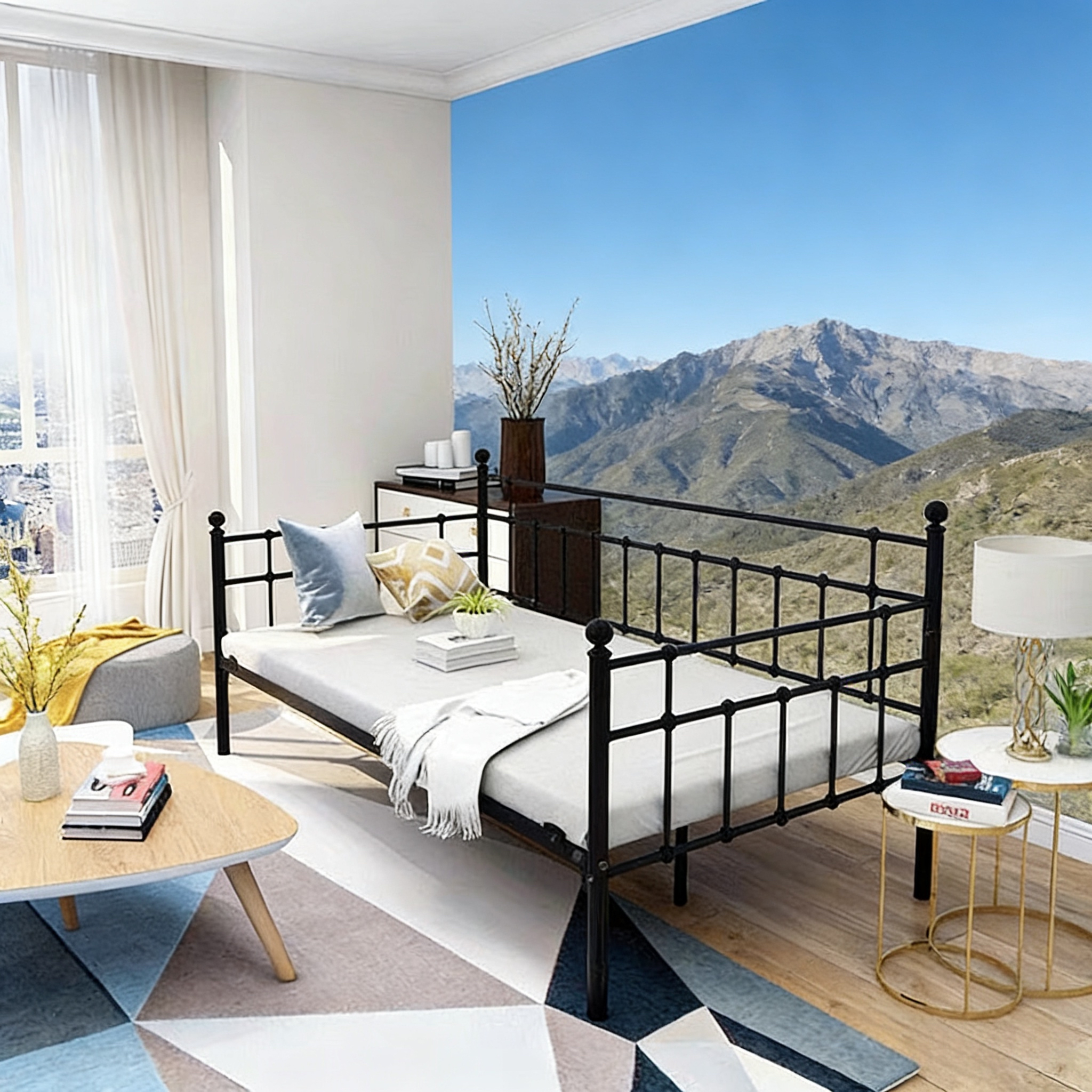 欧式简约铁艺沙发床1.2米1.5米双人床加固加厚宿舍铁架子床网红床