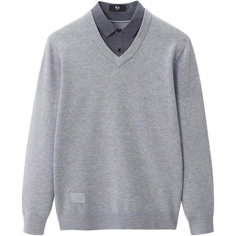 HLA/海澜之家轻商务休闲含羊毛双领针织衫秋冬季假两件毛衣男士款