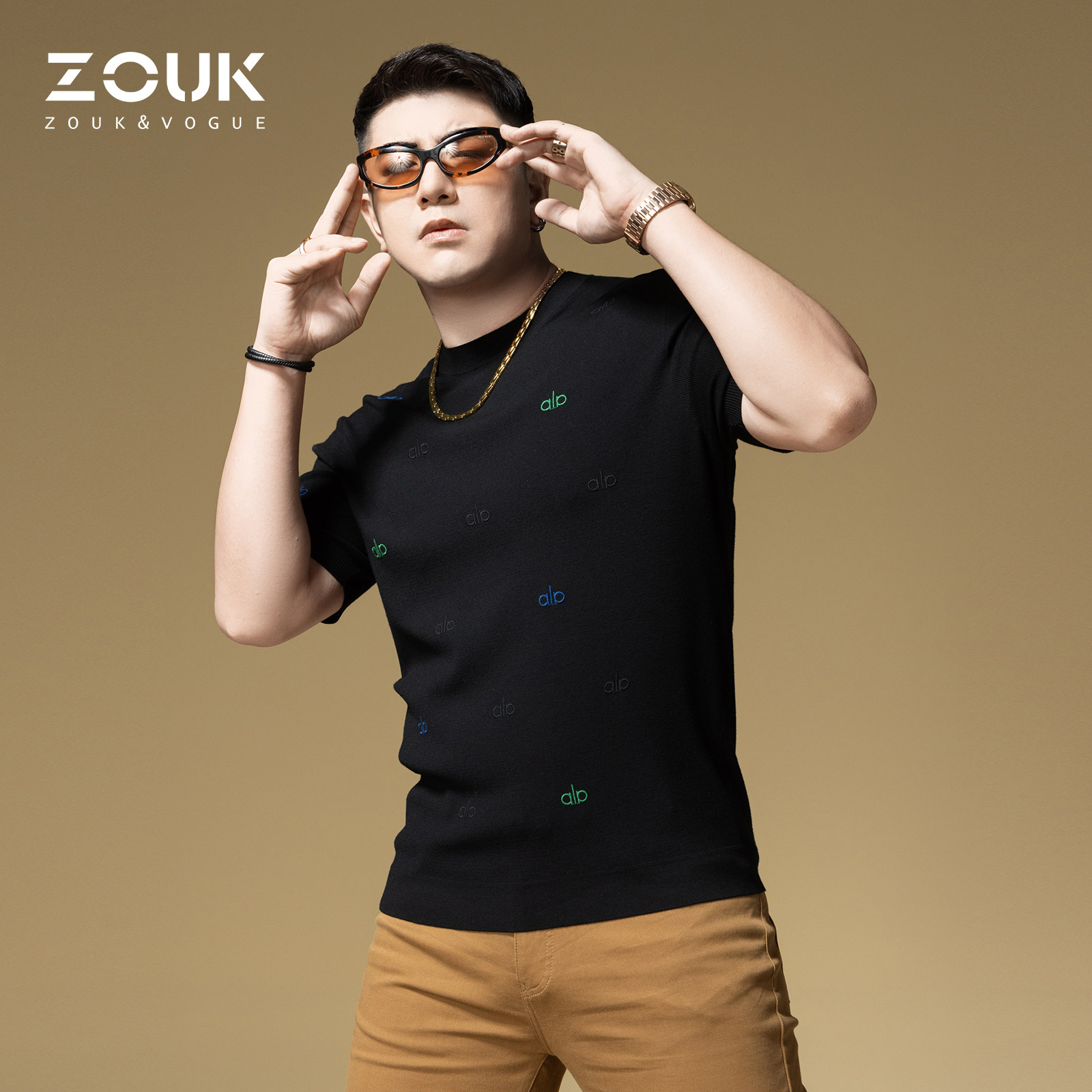 ZOUK刺绣字母高端针织衫男短袖潮牌休闲秋季上衣2025新款男士毛衣