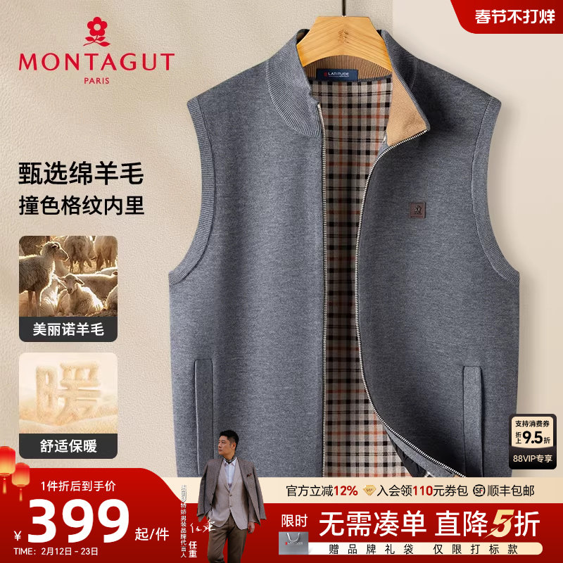 [绵羊毛/撞色条纹]梦特娇秋冬羊毛针织开衫男士毛衣背心马甲保暖J