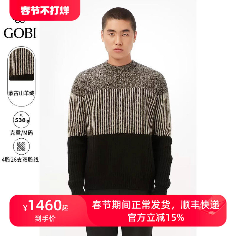 GOBI戈壁秋冬宽松撞色拼接圆领长袖羊绒衫男士毛衣针织上衣MK203