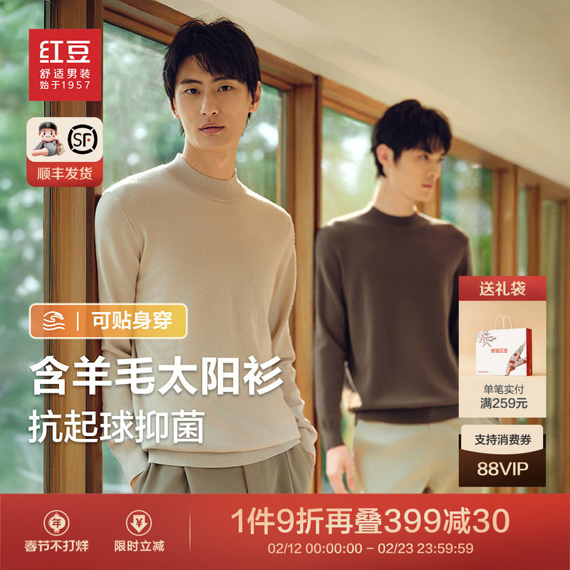 红豆含羊毛半高领毛衫男26春新品纯色抗起球抑菌针织衫男士毛衣