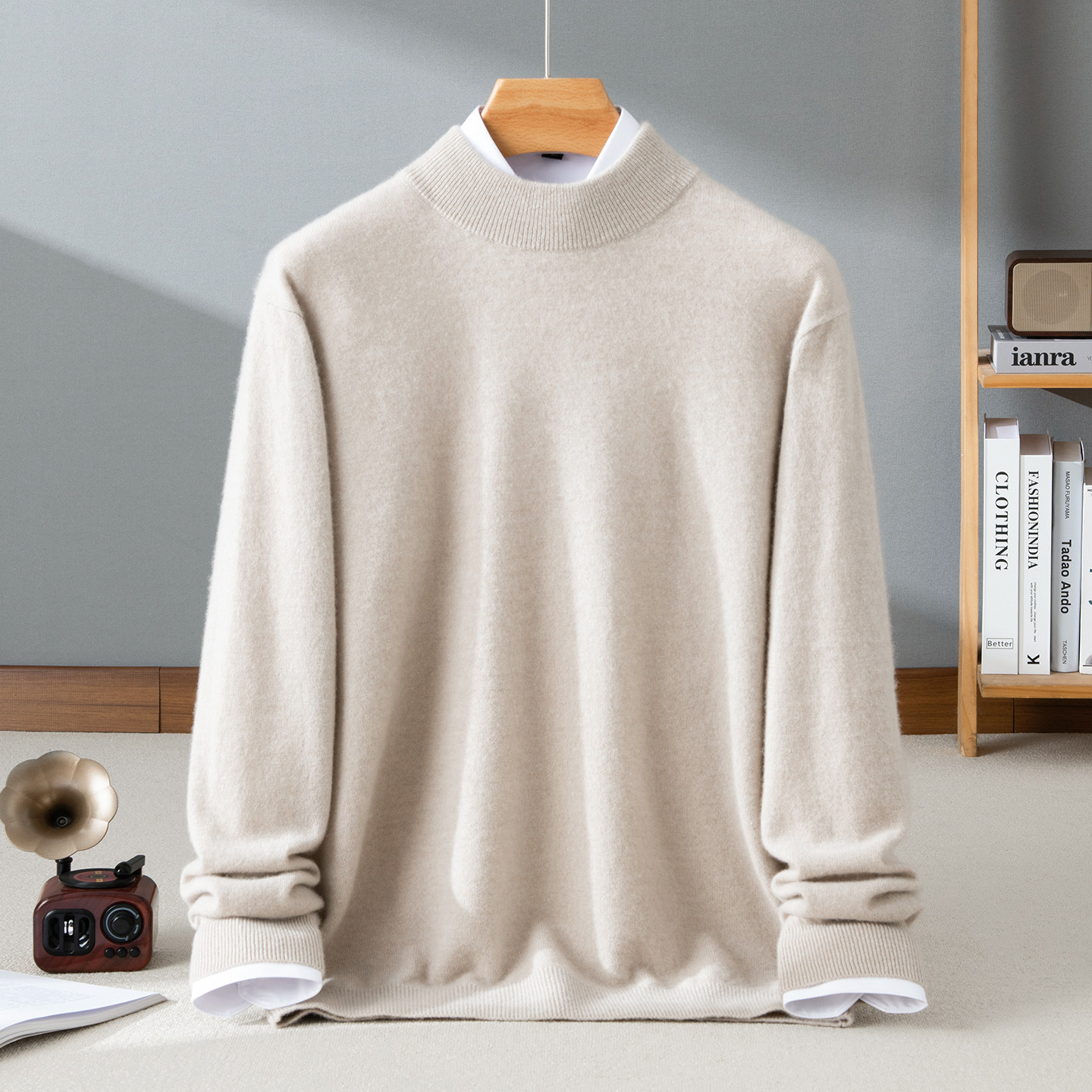 - 男高领羊毛衫