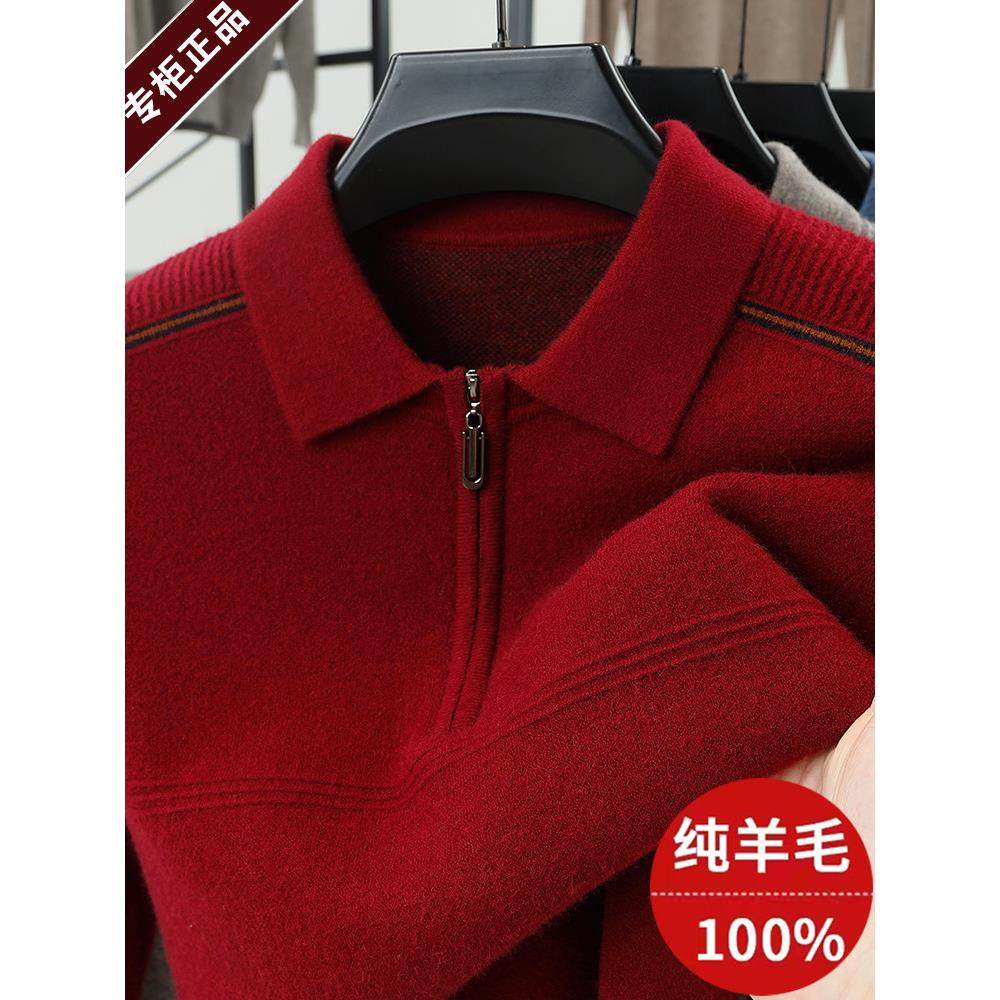 鄂尔多斯市新年红色羊毛衫男士毛衣翻领加厚冬季本命年爸爸羊绒衫
