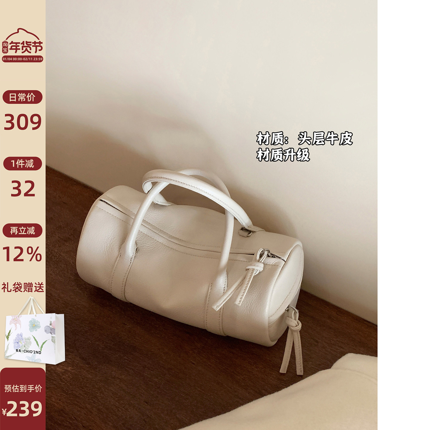 - 头层牛皮女手提包