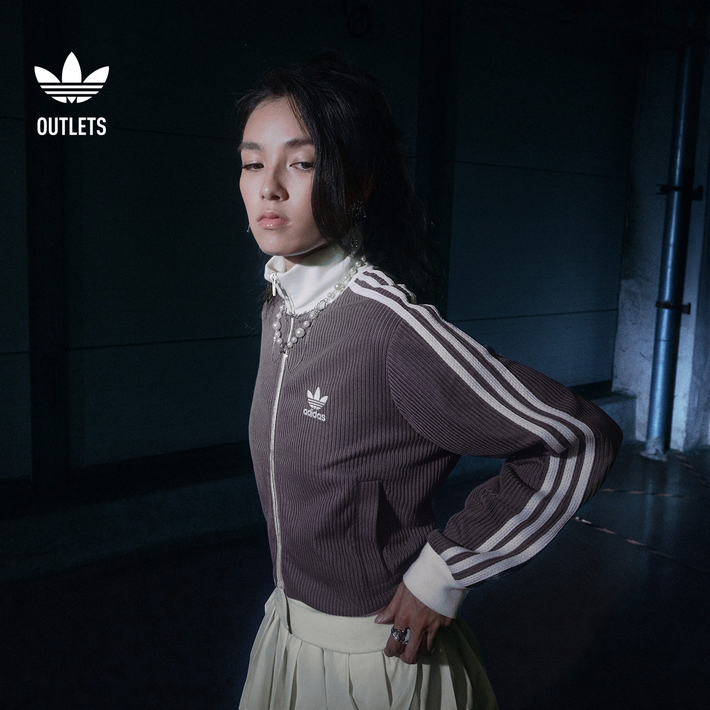 百搭宽松舒适针织运动夹克外套女adidas阿迪达斯outlets三叶草