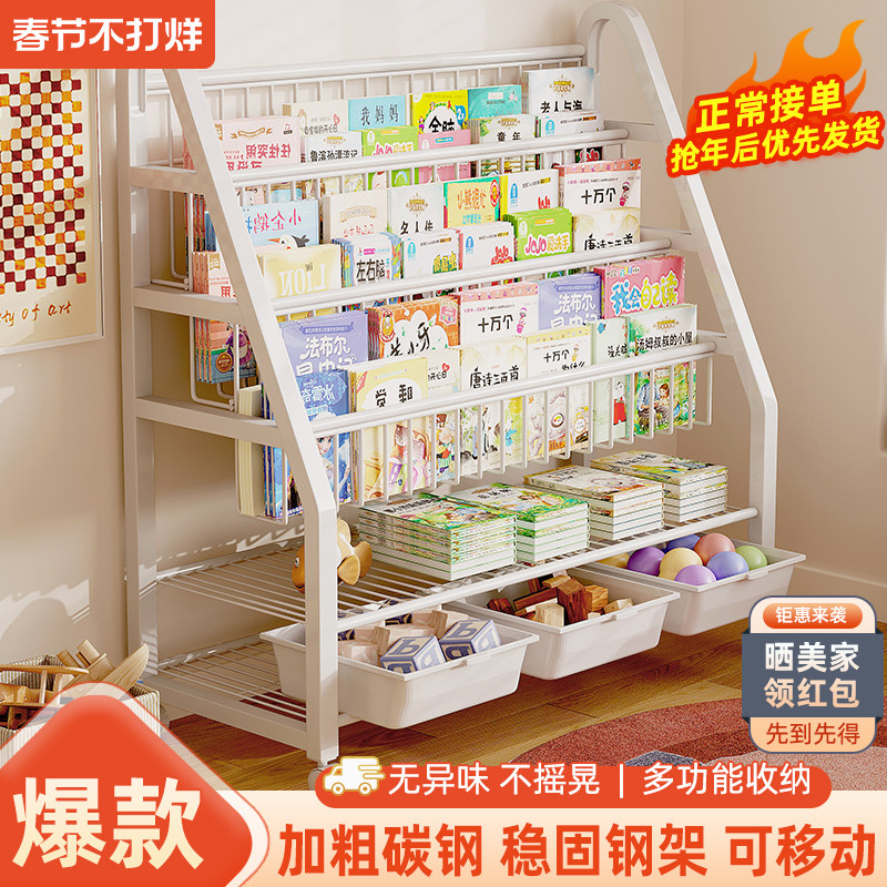 儿童书架家用绘本架一体阅读区移动玩具收纳架置物架落地简易书柜