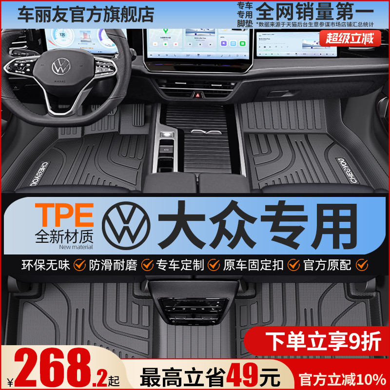 适用于大众速腾朗逸宝来迈腾id帕萨特探岳途观l全包围TPE汽车脚垫