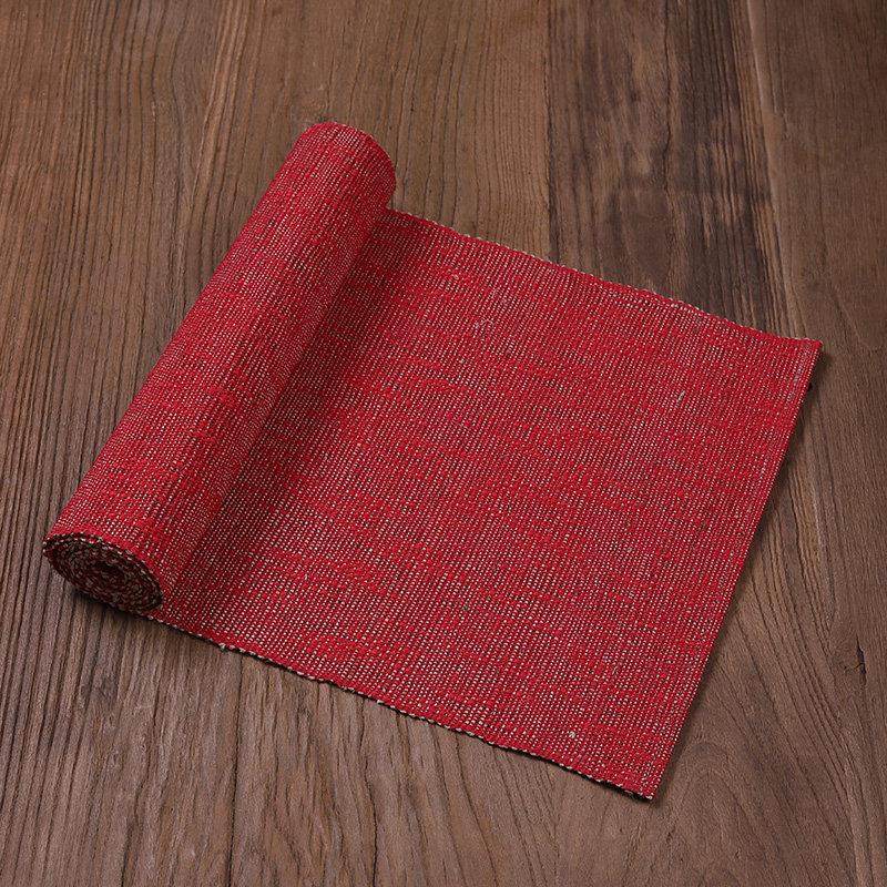 红色桌旗 中式喜庆苎麻茶席 禅意夏布茶旗现代简约防水吸水桌旗布