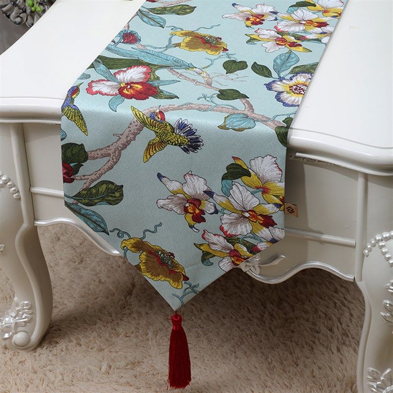 法式中古风桌旗 中式高级感电视柜桌布边柜茶几定制田园长条桌旗