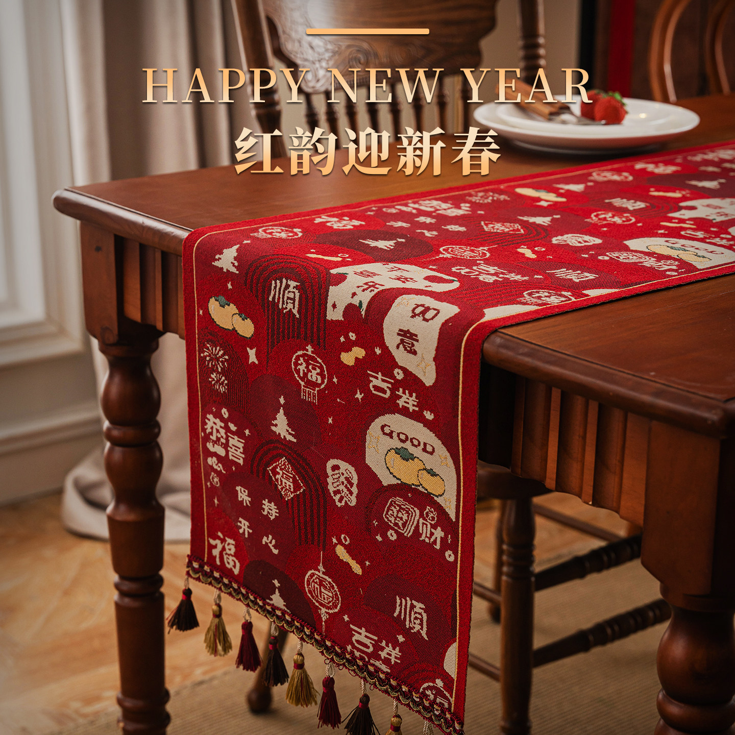 新年春节圣诞装饰桌旗场景节日布置氛围感中式高级感茶几新春桌布