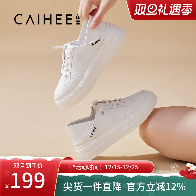 华耐厚底小白鞋春秋新款2025潮流百搭运动鞋女款薄款休闲增高板鞋