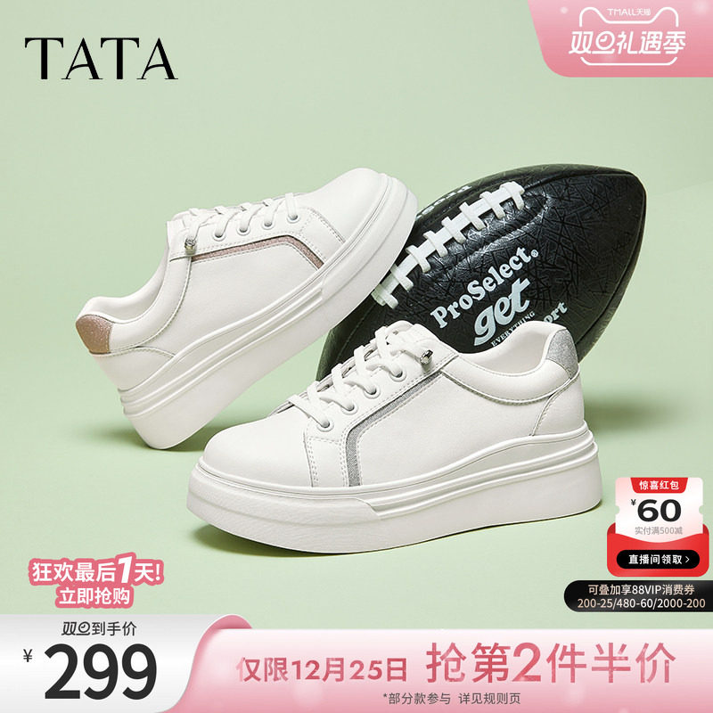 TATA他她厚底休闲板鞋女鞋轻便松糕鞋百搭小白鞋春季新款CYC01AM5