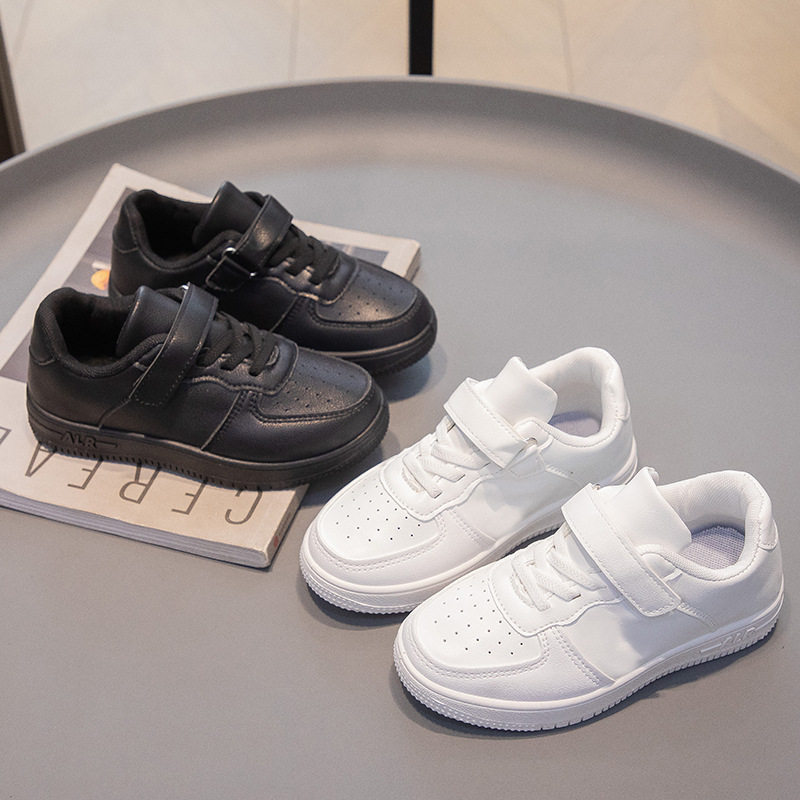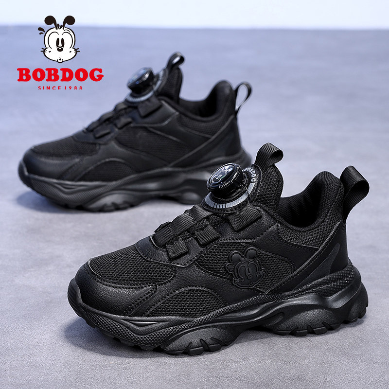巴布豆童鞋黑色儿童小白鞋春秋男女白色运动鞋网面全黑中大童皮面