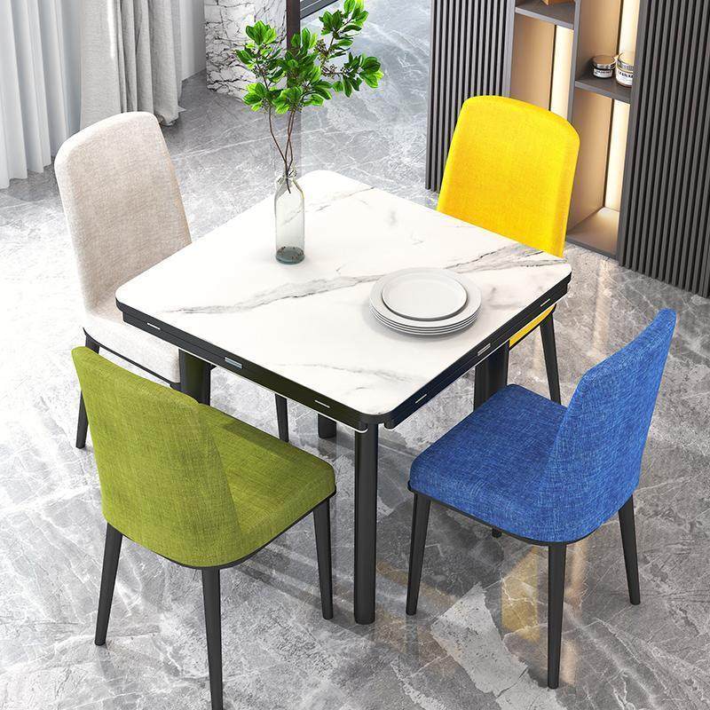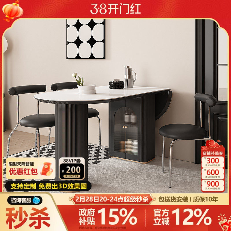 现代简约轻奢岩板餐桌折叠家用电磁炉小户型组合饭桌椅长方形伸缩