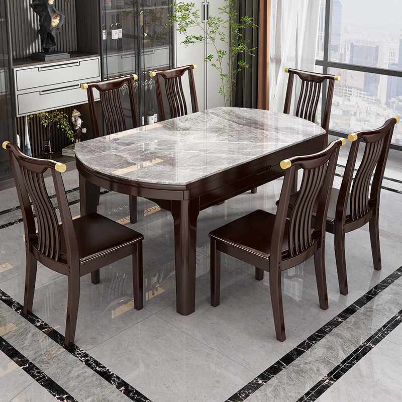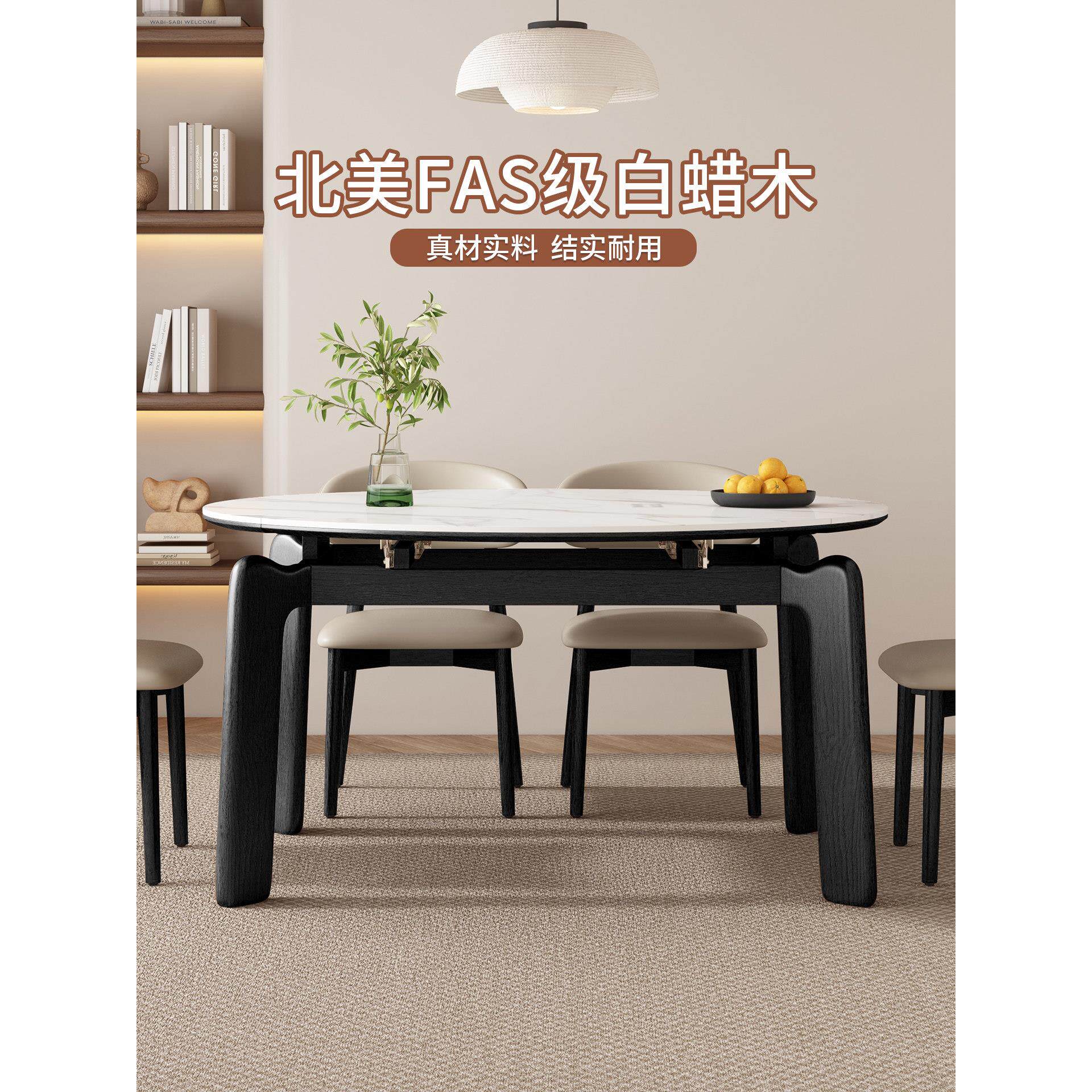 椅岩板餐桌吃饭桌轻奢餐桌折叠圆形现代简约2024实木圆桌新款家用