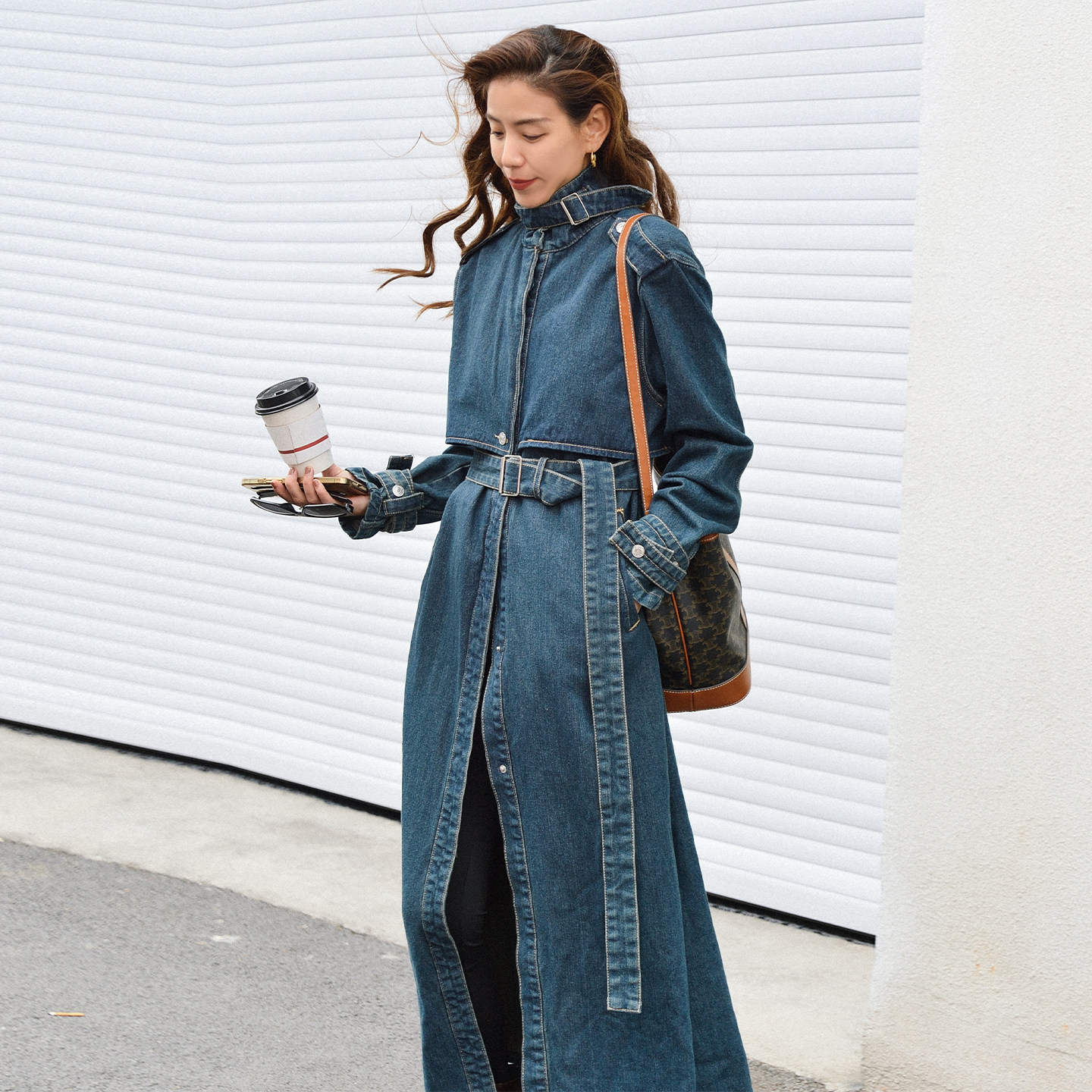 [yeren3] 165cm+专属 长款全棉牛仔风衣女春秋显瘦立领外套