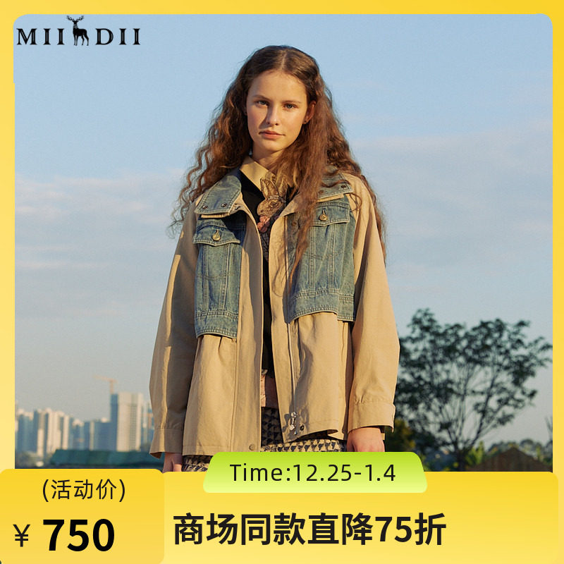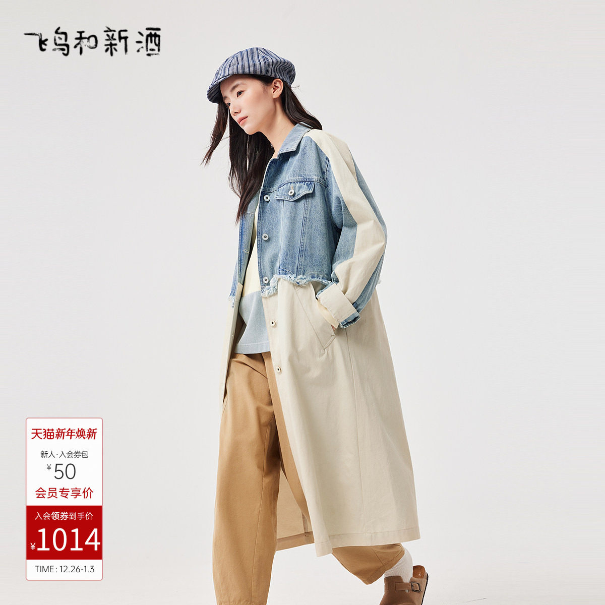 飞鸟和新酒商场同款2025春季新款纯棉拼接牛仔风衣女FZ510062001