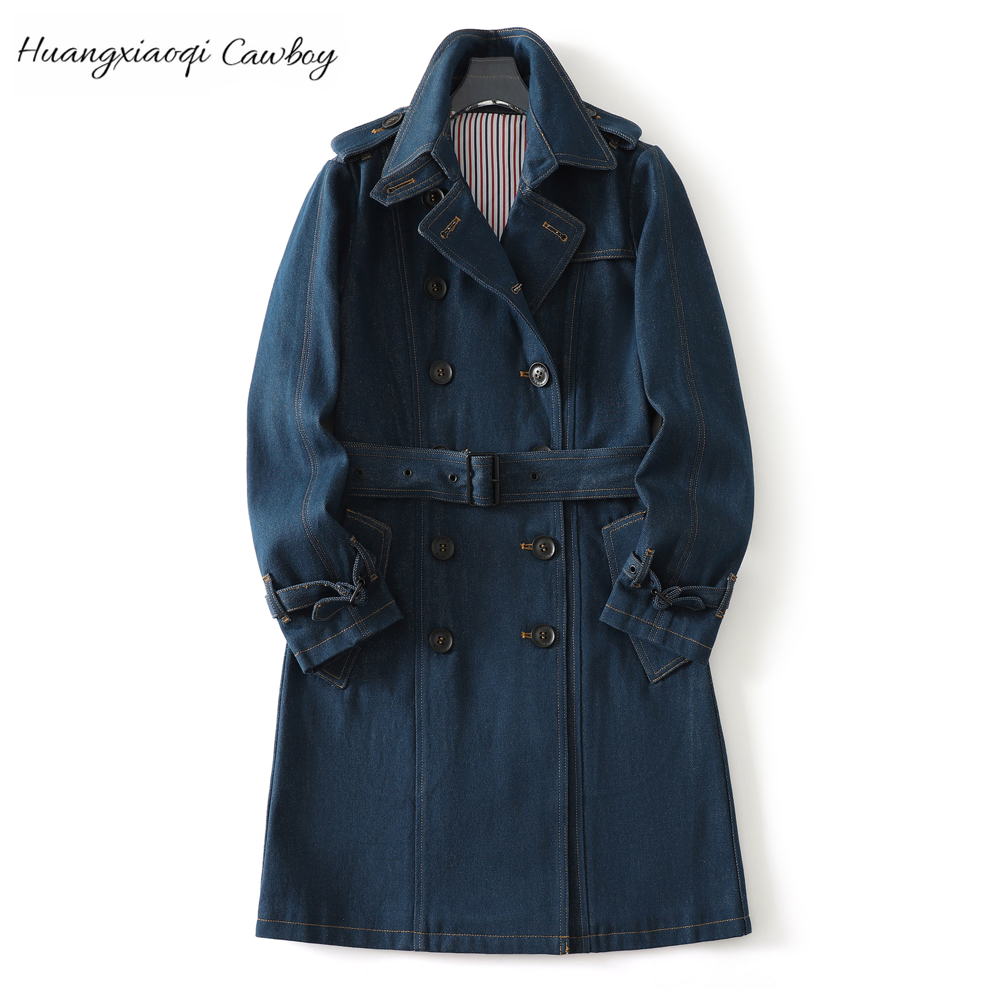 Huangxiaoqi Cowboy新款复古水洗天丝棉牛仔风衣女双排扣中长款