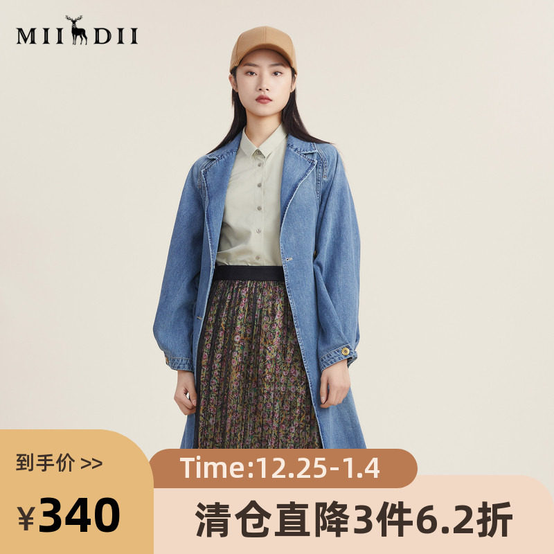 谜底纯棉牛仔风衣女2022秋新品设计感修身中长款外套223ME1205