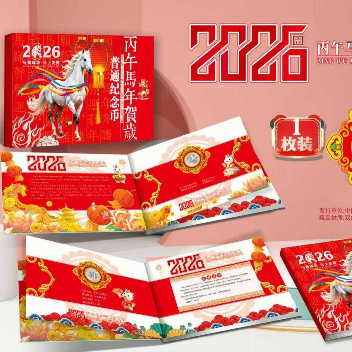 马年纪念币收藏册 马年单币厚卡册 贺岁币保护册 集藏册(空册)