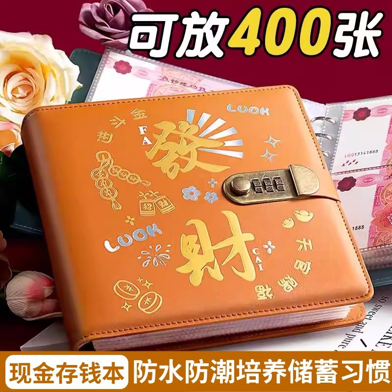 发财现金存钱本2026新款儿童存钱夹钱册大容量密码锁钞票收纳册纸币纪念币收藏册可放现金万元理财神器