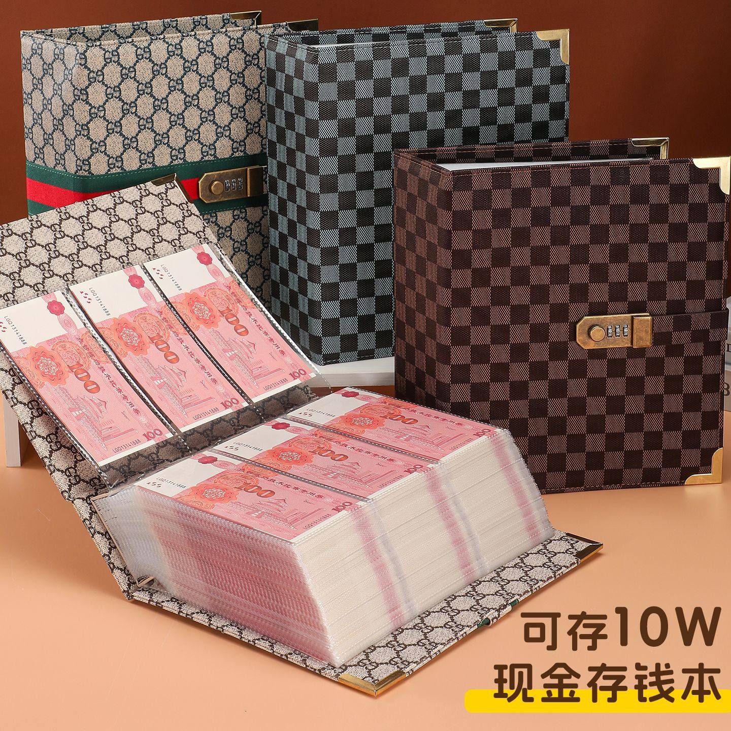 新款密码锁存钱本可放10万元现金纸币收纳册轻奢钱币纪念币收藏册