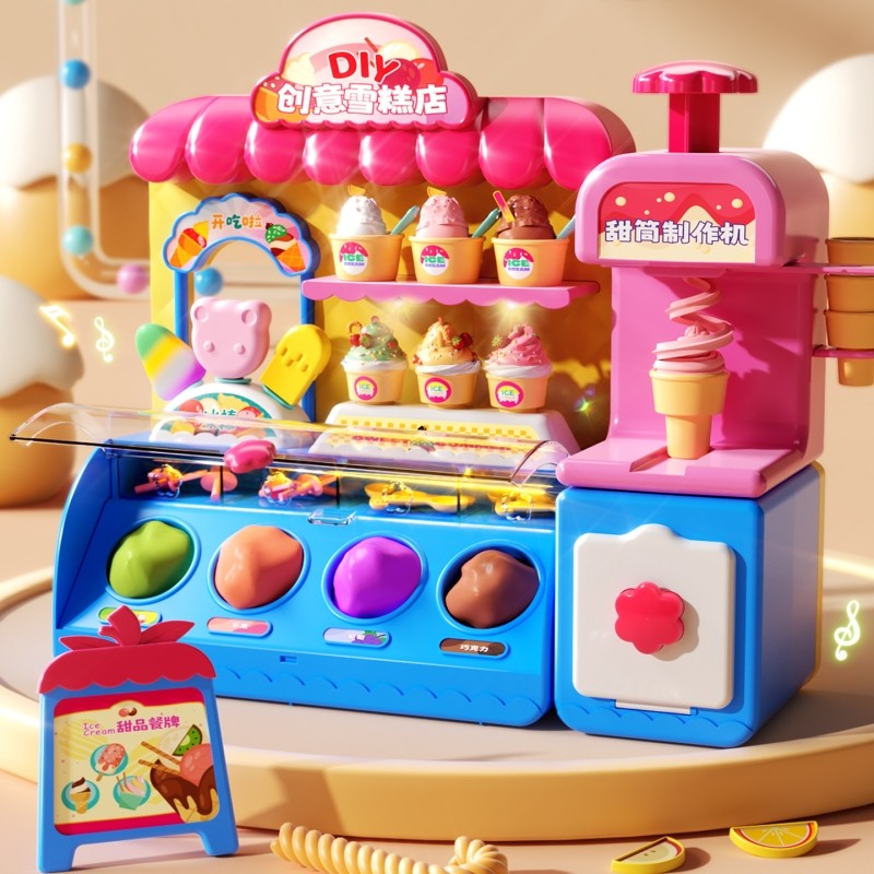 过家家玩具冰淇淋雪糕彩泥机儿童益智DIY粘土套装女孩生日礼物