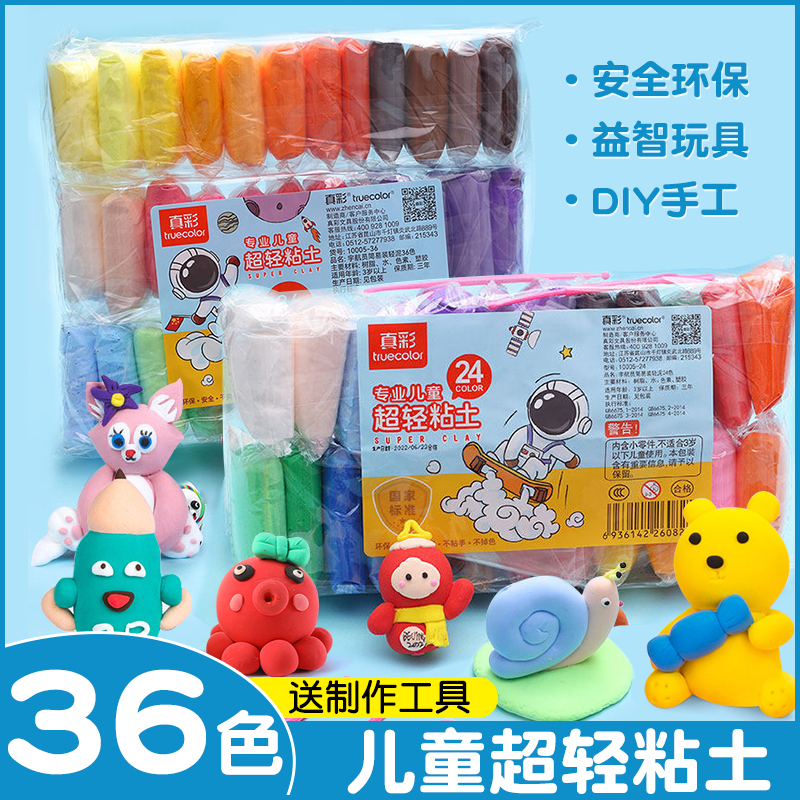 真彩超轻粘土套装12色24色36色彩色橡皮泥彩泥儿童幼儿园安全黏土