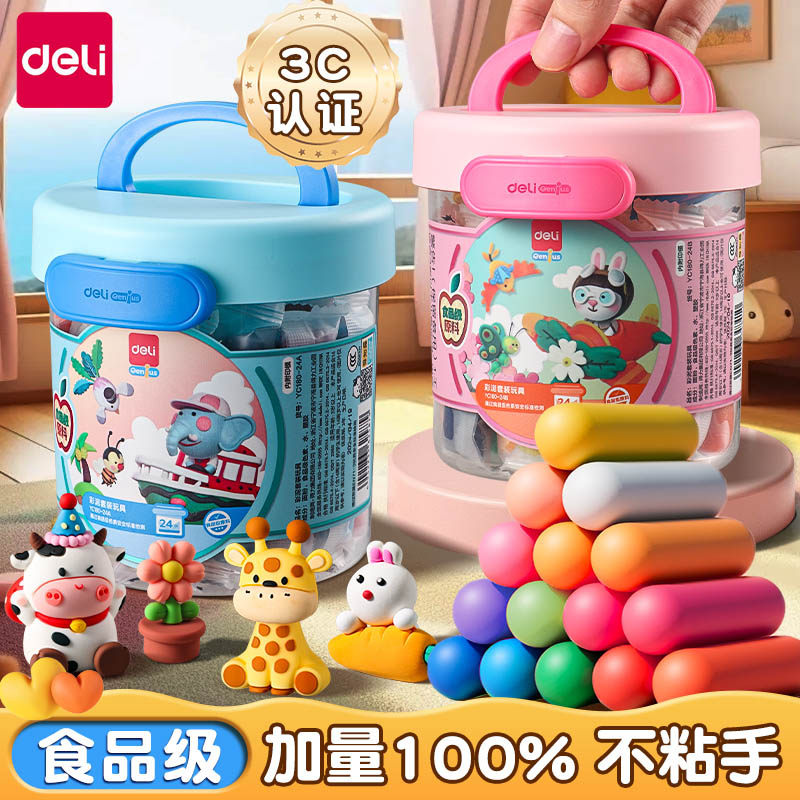得力橡皮泥儿童12色粘土24色幼儿园宝宝彩泥无毒食品级玩具diy专用手工黏土小学生安全超轻粘土套装