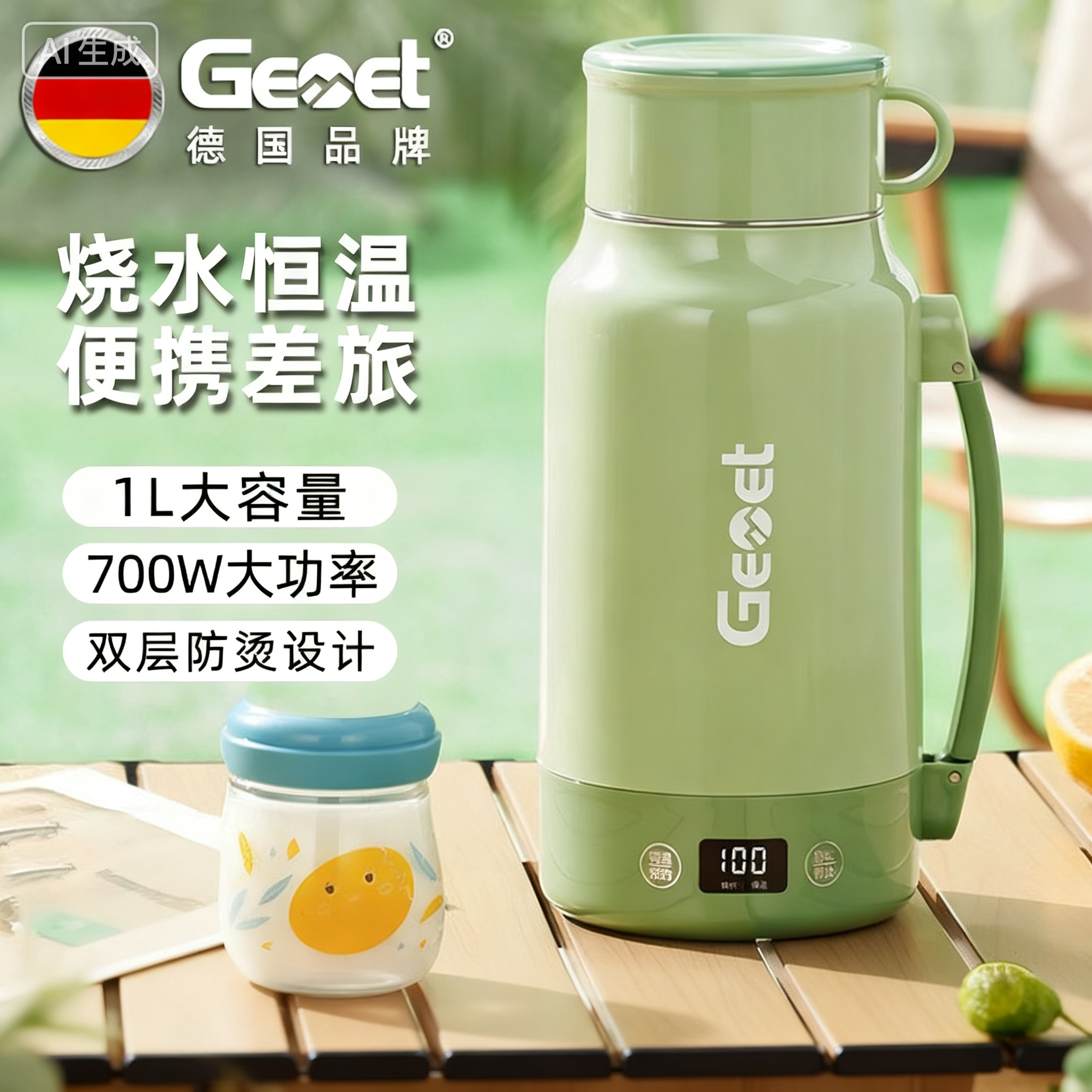 德国品牌GEMET 304不锈钢保温便携式烧水壶家用宿舍旅行电热水壶