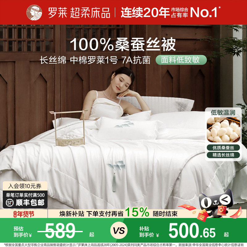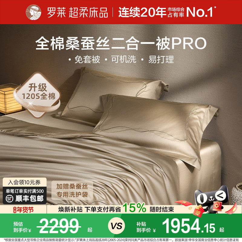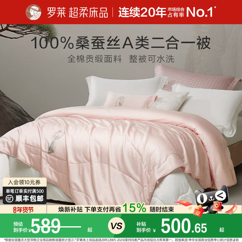 罗莱家纺100%桑蚕丝被子长丝绵四季可用春秋被二合一被芯冬被结婚