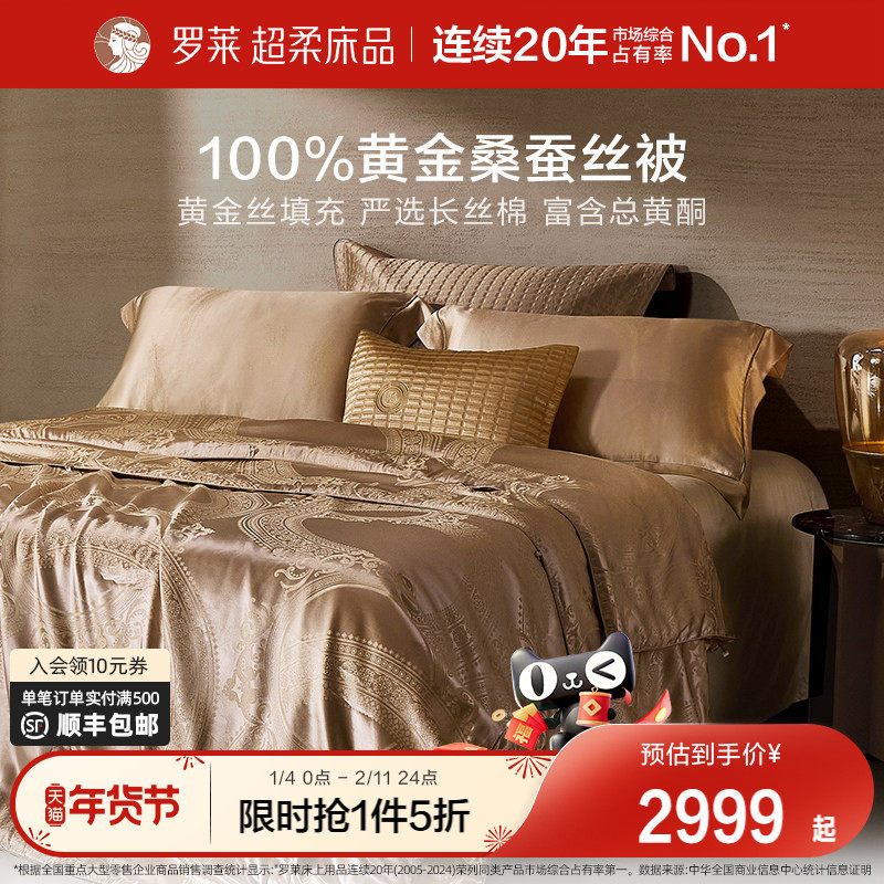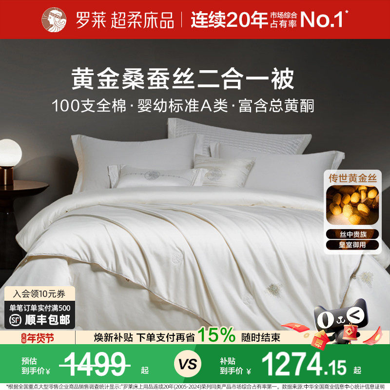 罗莱家纺100黄金丝桑蚕丝被子四季通用二合一子母被芯结婚陪嫁