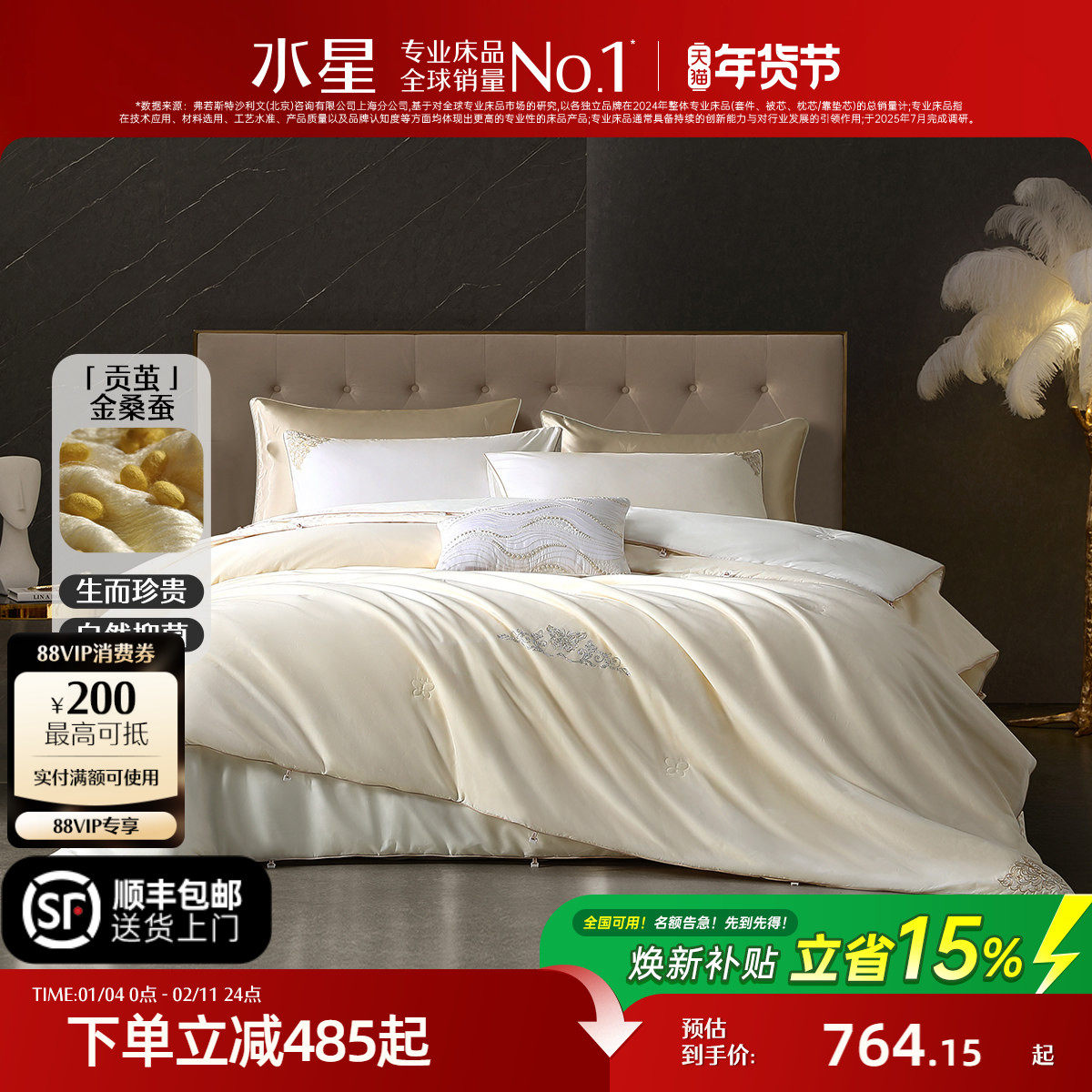 水星家纺高端金桑蚕丝被子100%蚕丝春秋被A类轻奢二合一被新年礼