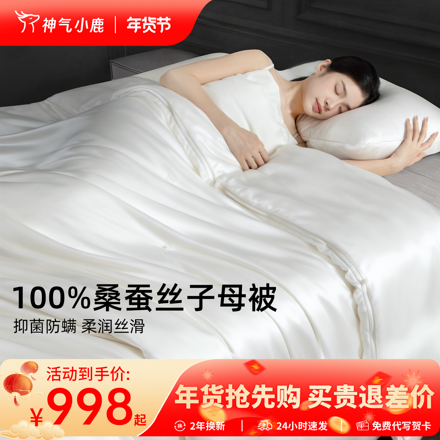 神气小鹿100%桑蚕丝被子120支双股双宫茧桑蚕丝秋冬抑菌子母被芯