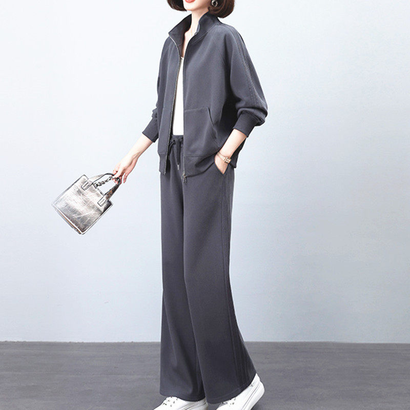 中老年时尚女装运动套装秋装新款40岁50妈妈秋季立领上衣两件套