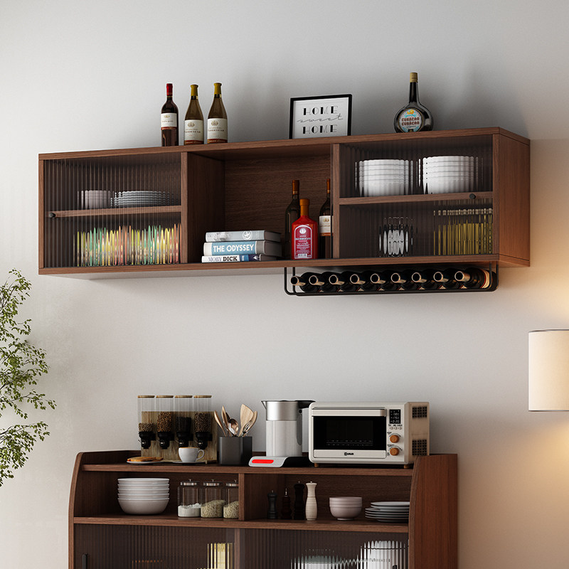 实木吊柜上墙面壁柜厨房玻璃壁挂悬空挂墙式餐边柜调料置储物顶柜