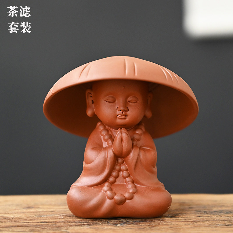 宇轩 创意紫砂小和尚茶宠茶漏茶滤茶叶过滤网茶具滤茶器全瓷过滤