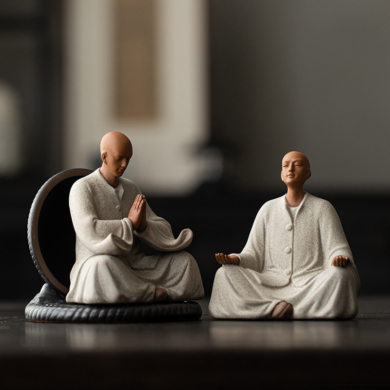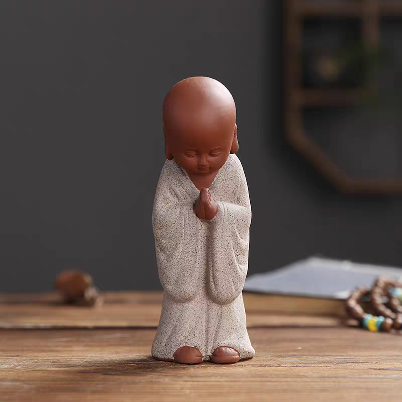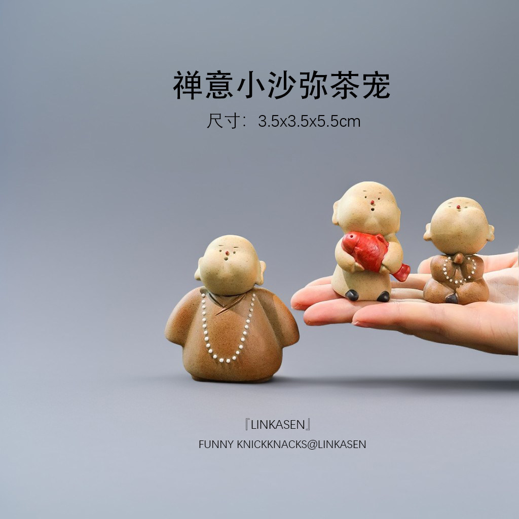 创意紫砂小和尚茶宠摆件陶瓷人物佛系小僧禅意家居茶室茶桌装饰品