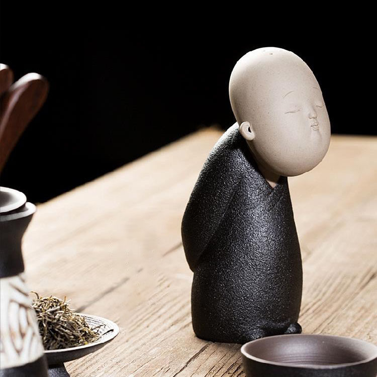 哥窑禅意小和尚茶宠摆件创意佛系小沙弥茶桌面装饰品茶道配件摆设