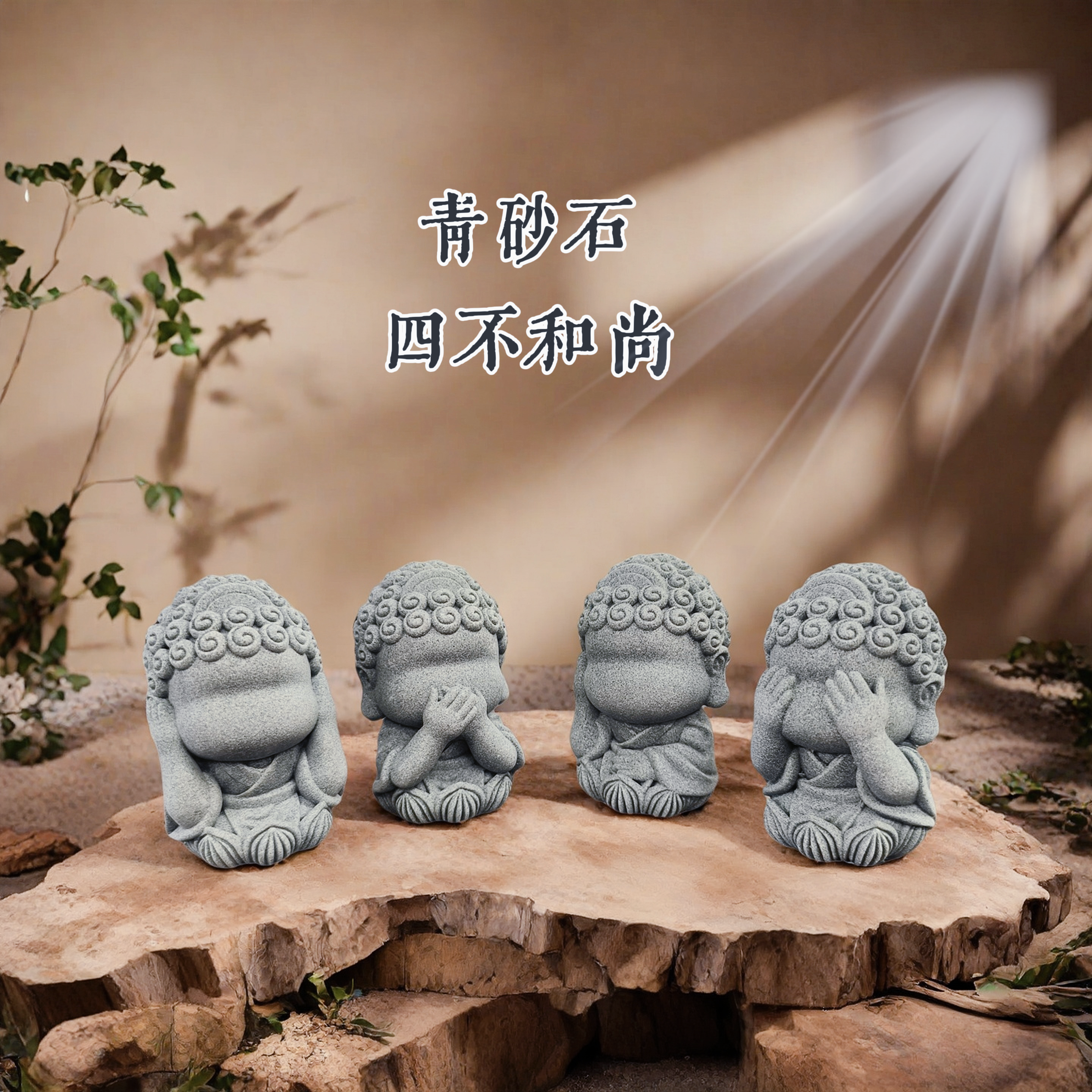 禅意四不小和尚茶宠茶桌摆件配件装饰品玄关茶几办公室桌面小摆设