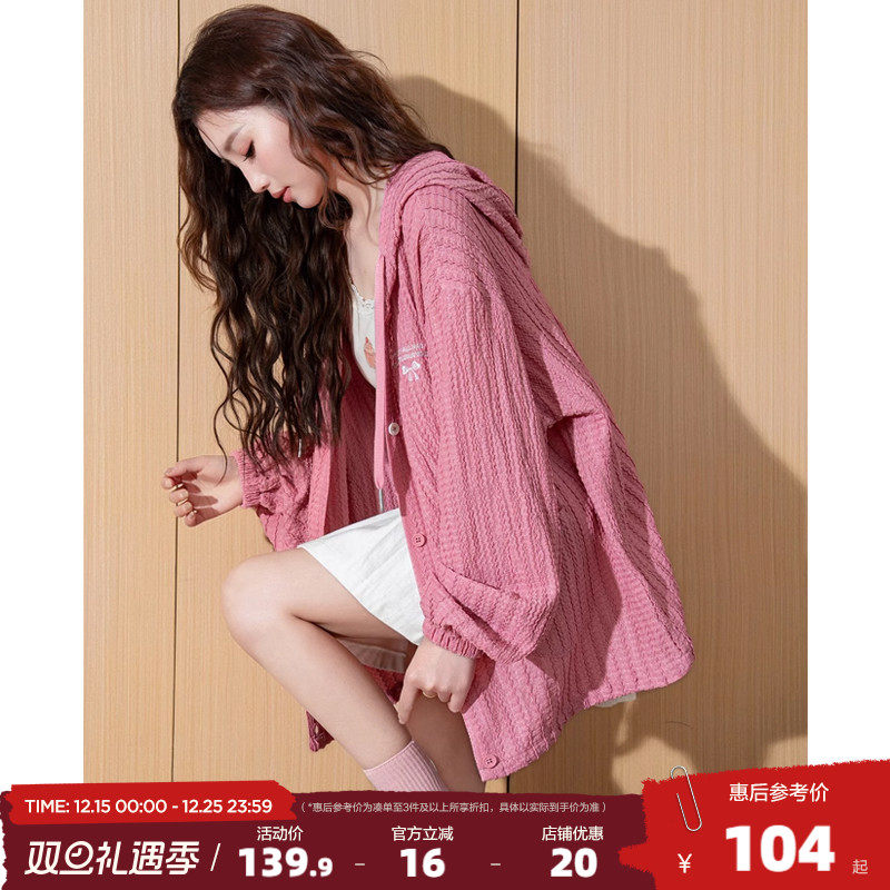 唐狮2025新款女外套春秋季宽松休闲连帽薄款粉色开衫外套今年流行