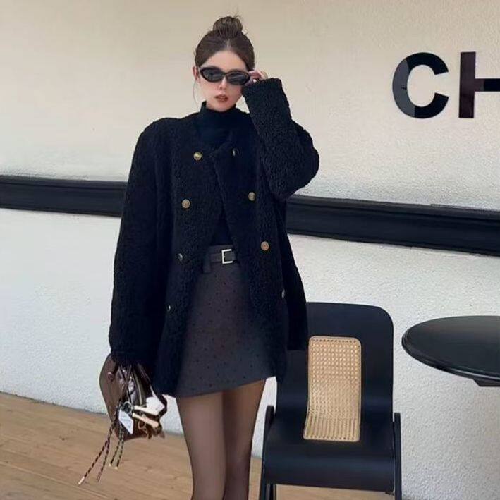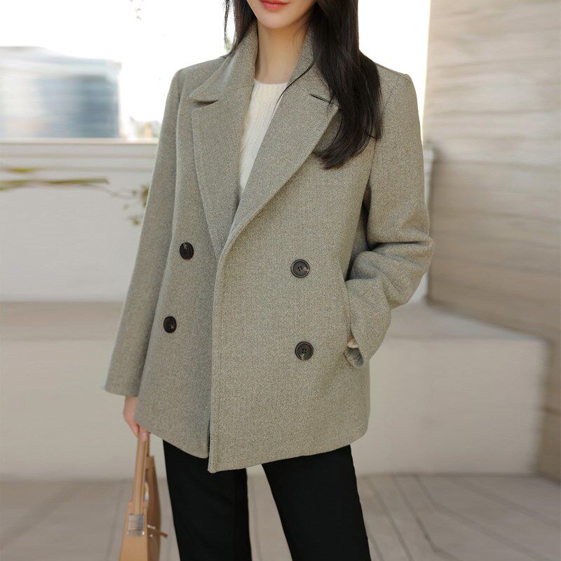 短款毛呢西装外套秋冬款时尚双排扣高级感赫本风小个子呢子大衣女