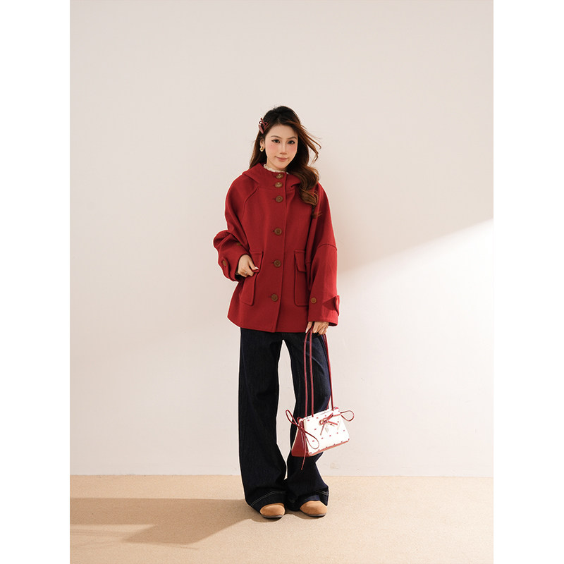 法式气质新年圣诞战袍小红帽毛呢外套冬季高级感小个子呢子大衣女