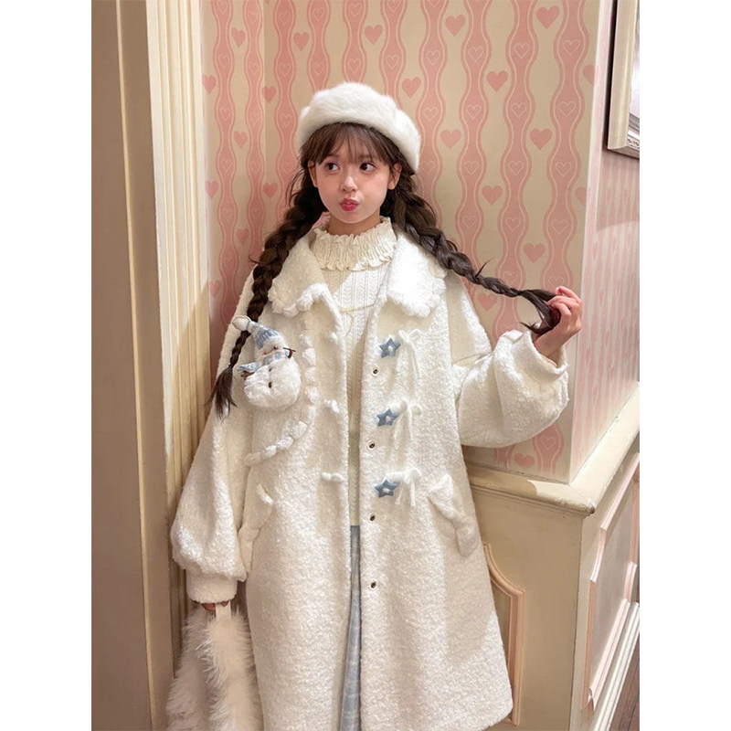 - 白色毛呢大衣女中长款