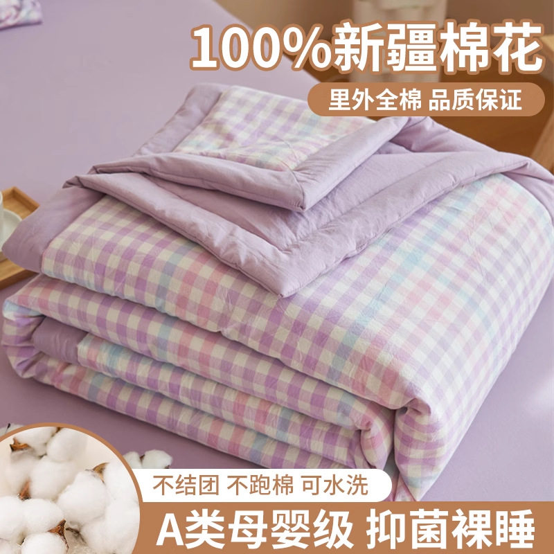 全棉夏被空调被夏凉被100%纯棉薄被子单人被芯新疆棉花棉被可机洗