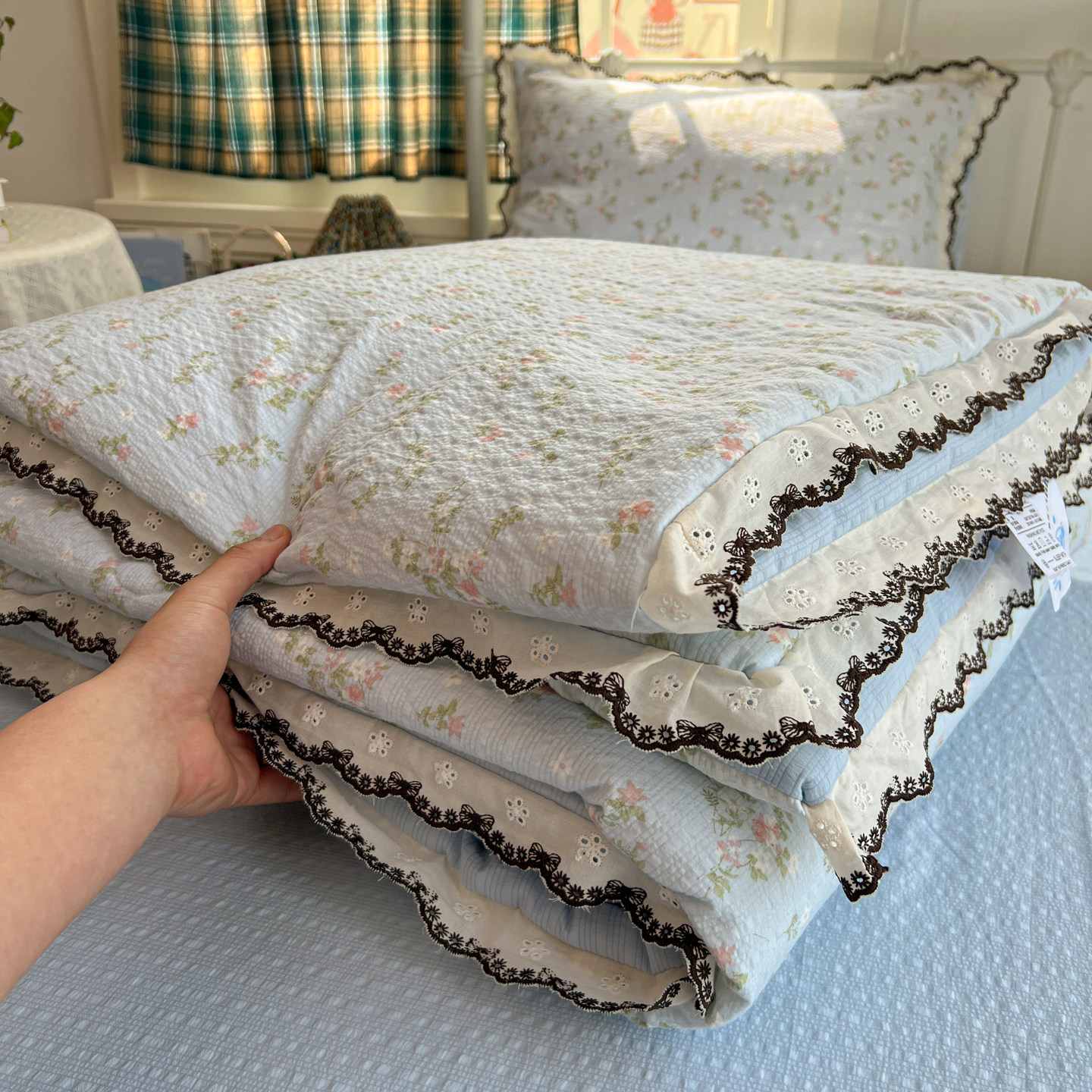 ins全棉花边双层纱夏凉被子单件夏季空调被春秋被薄款学生夏被芯