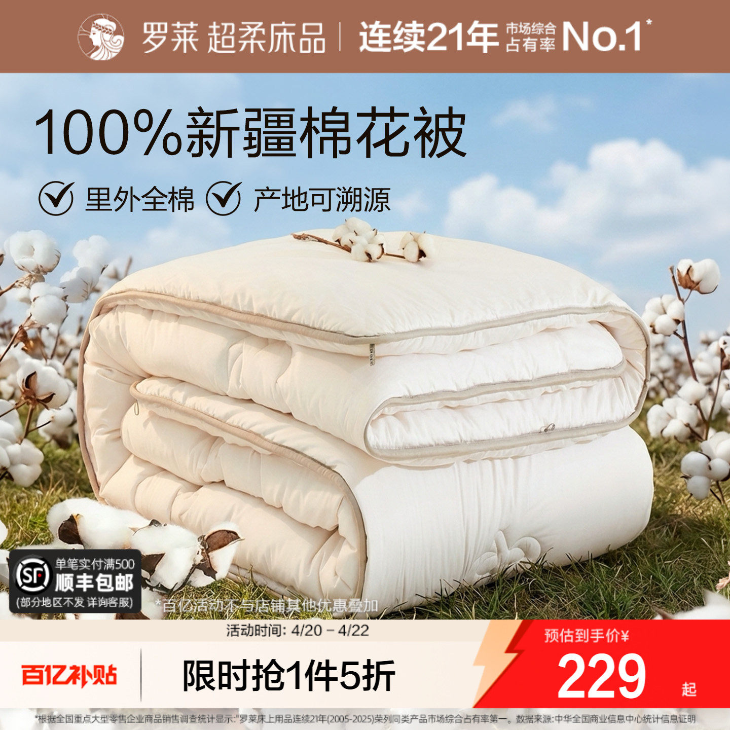 罗莱家纺全棉新疆棉花被纯棉被子棉絮春秋被芯夏凉空调被四季通用