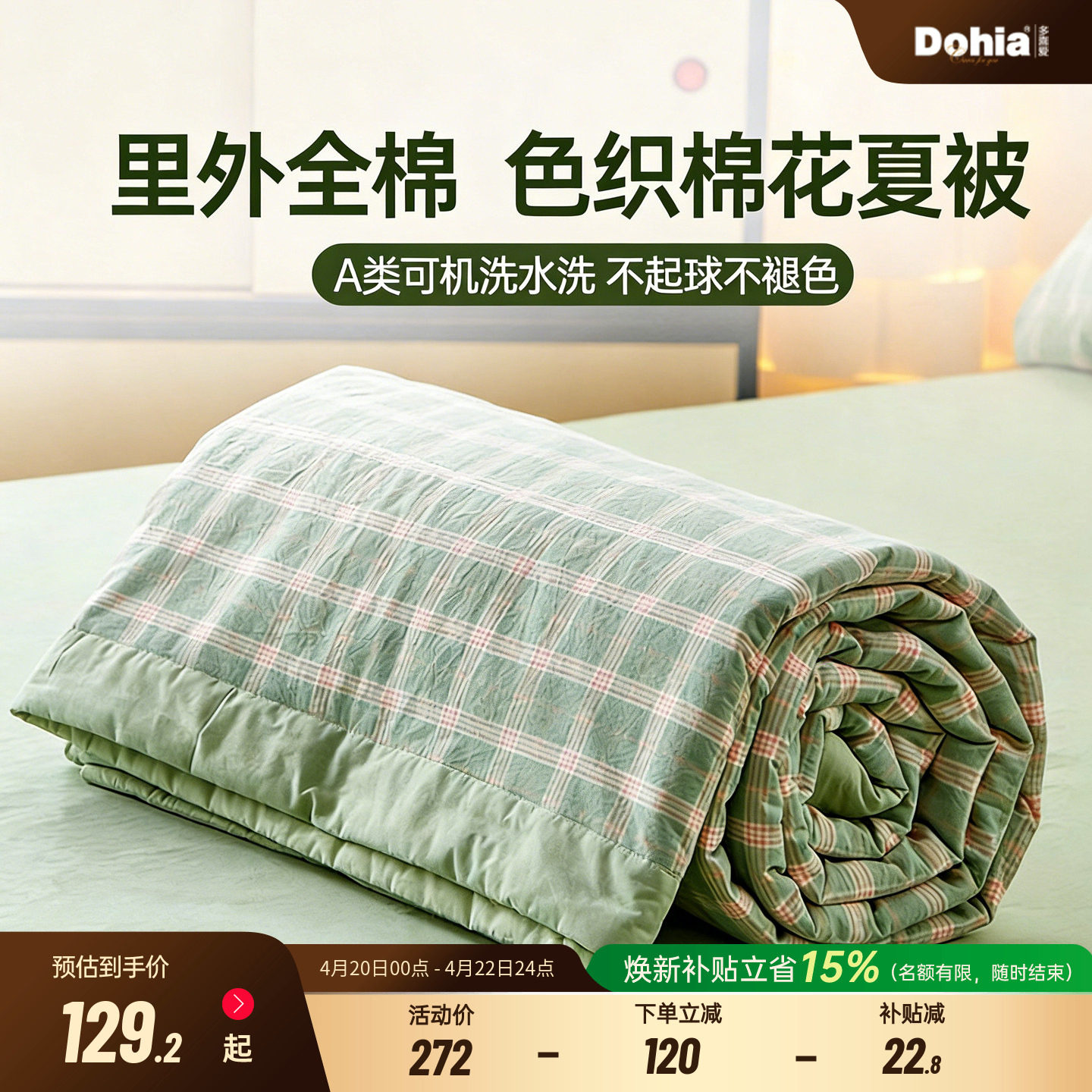 多喜爱夏被全棉色织新疆棉花空调被夏凉被学生宿舍被子被芯可水洗