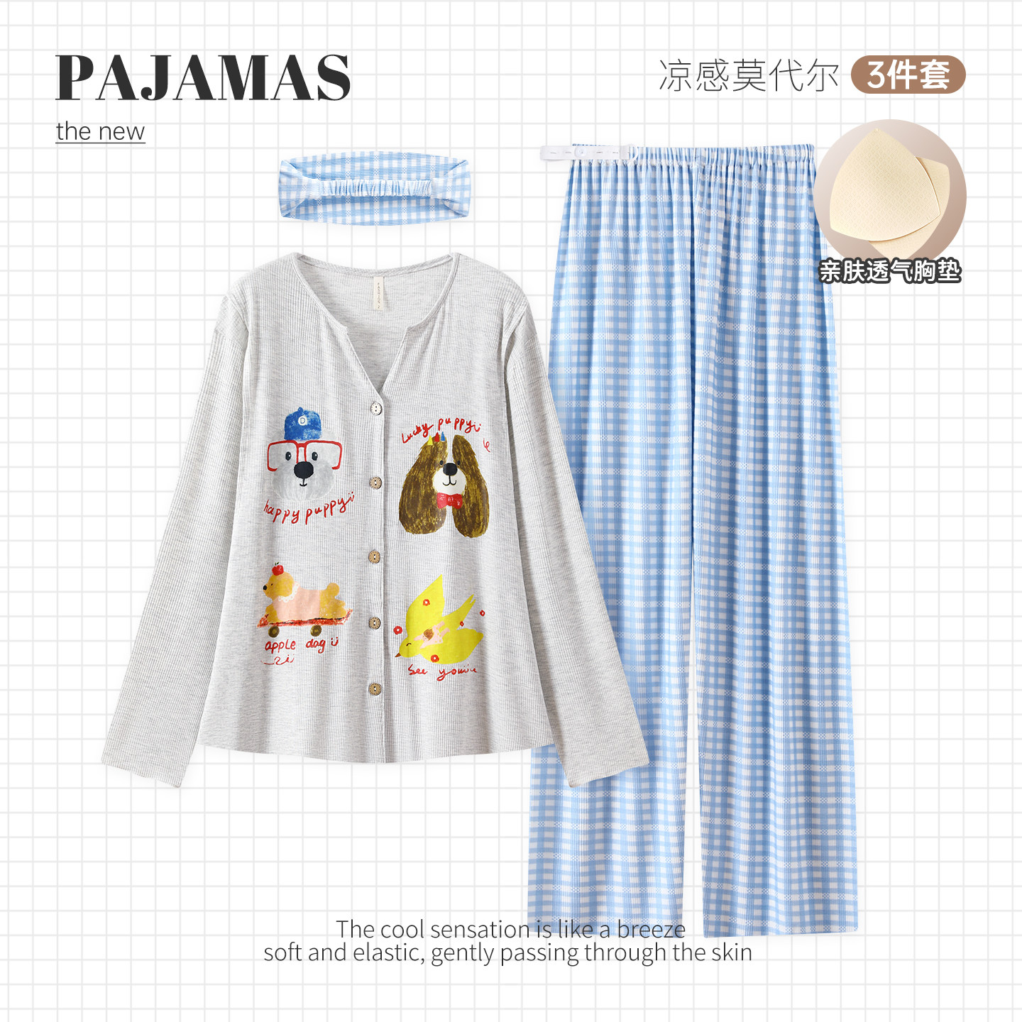 莫代尔带胸垫月子服春夏薄款产前产后产妇春秋孕妇哺乳睡衣女大码